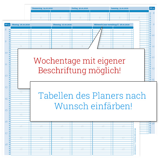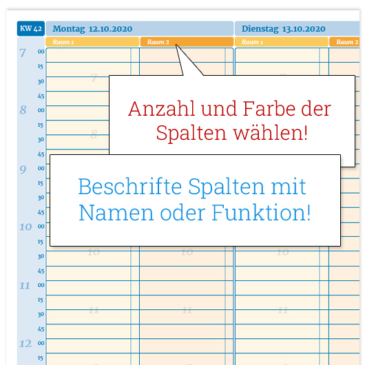 - bis zu 12 Spalten je Tag + Spaltenbeschriftungen u. Farben