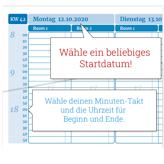 - Du möchtest einen Planer mit deinen individuellen Öffnungszeiten und Pausenzeiten